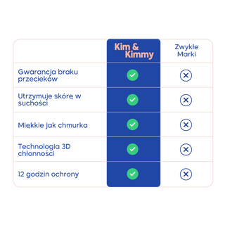 W Kim & Kimmy rozumiemy, że komfort i zdrowie Twojego dziecka są dla Ciebie najważniejsze. Dlatego nasze pieluszki dla niemowląt zostały zaprojektowane z myślą o potrzebach Twojego malucha. Oferują one: